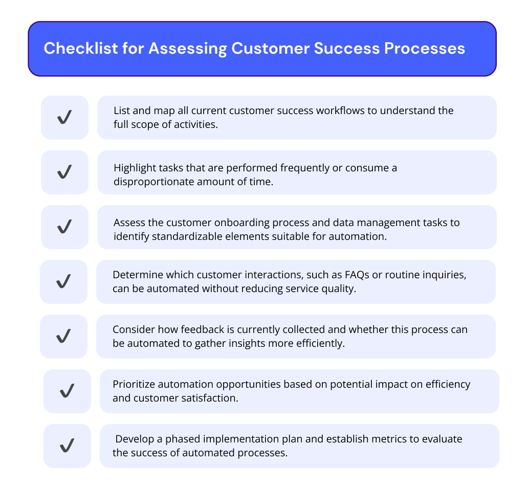 Next, assess your current customer success processes to identify areas that can benefit from automation.