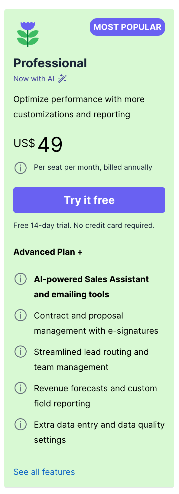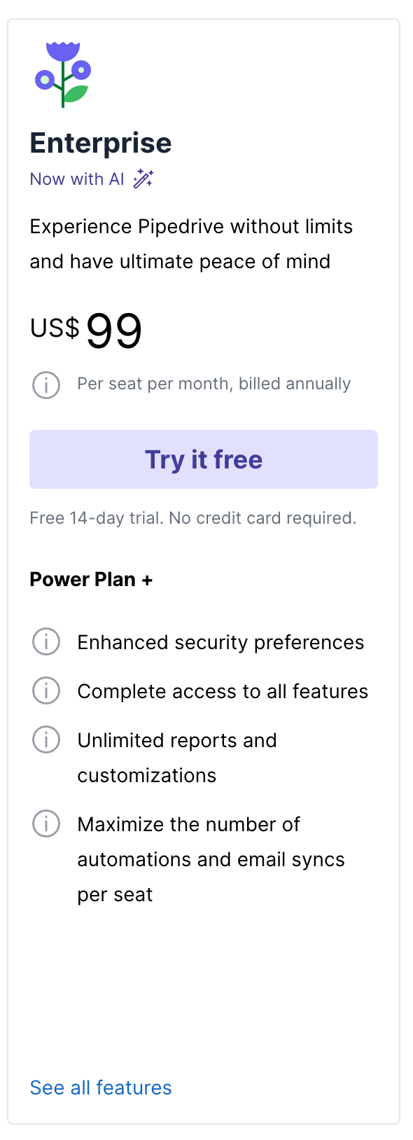 Especially if you’re interested in AI and automation capabilities, as not all Pipedrive pricing plans offer these features.