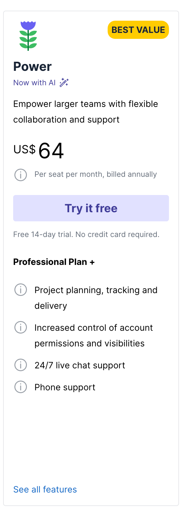 The Power plan is designed for larger teams, as stated on Pipedrive’s website.