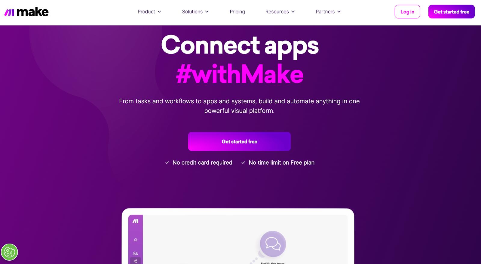 Make offers a free plan that lets you execute 1,000 operations monthly.