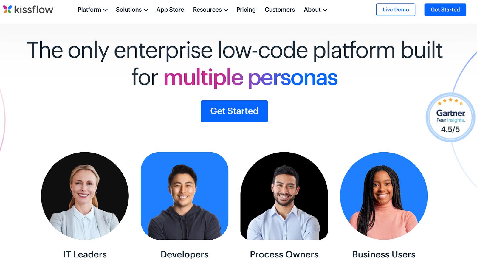 - Kissflow: A low-code platform that automates workflows for multiple personas.