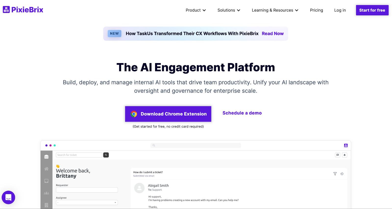 Trusted by brands like Samsung, TaskUS, and Builtin, PixieBrix is a low-code platform that helps streamline processes, and handle complex tasks with ease.