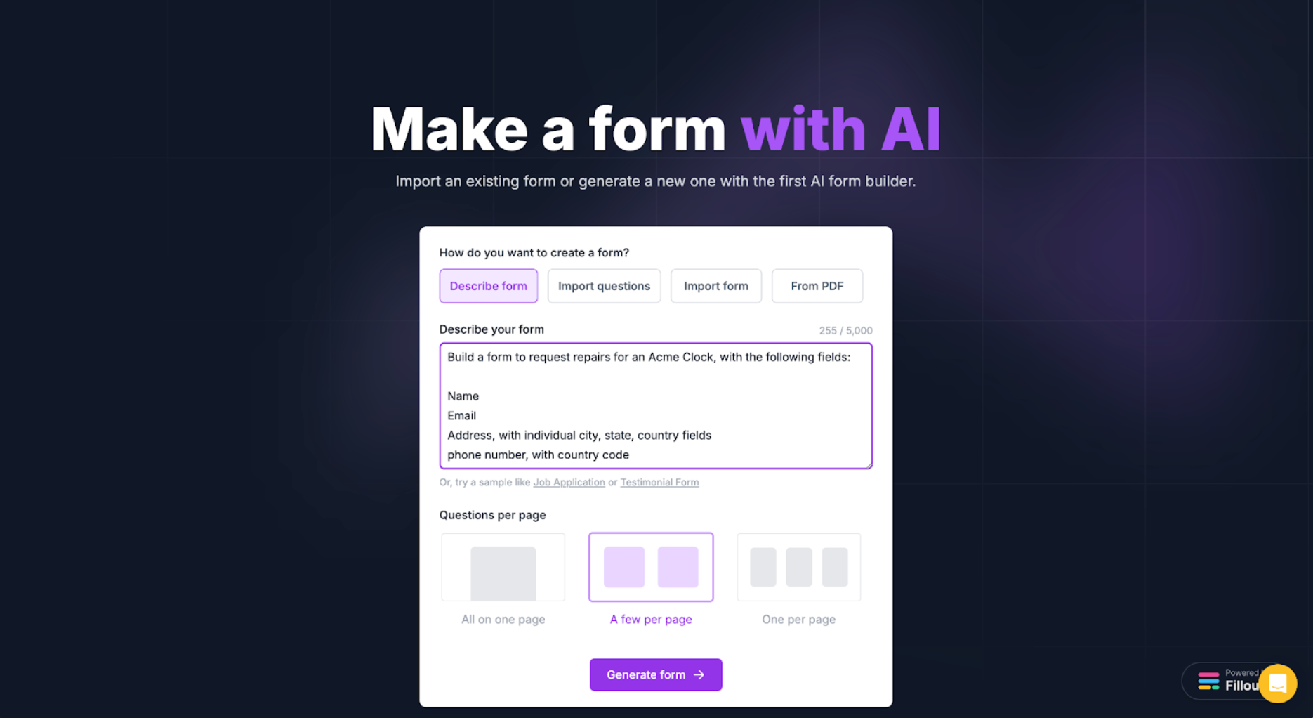 We’ve carefully designed Fillout’s AI to make it as fast to build forms as possible.