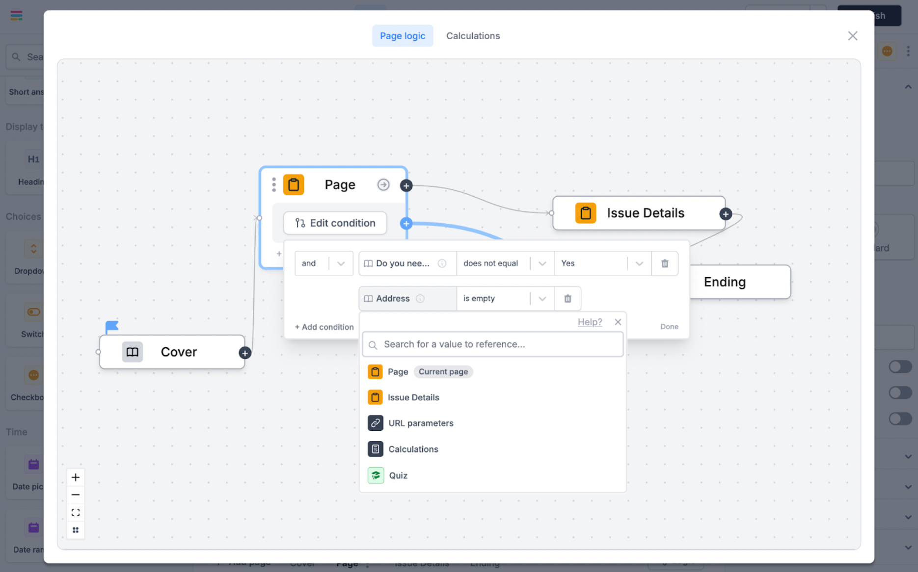 Pair that with logic to only show form fields and pages when they’re needed, included with every Fillout plan. That way your respondents will only need to answer the questions you couldn’t answer otherwise.