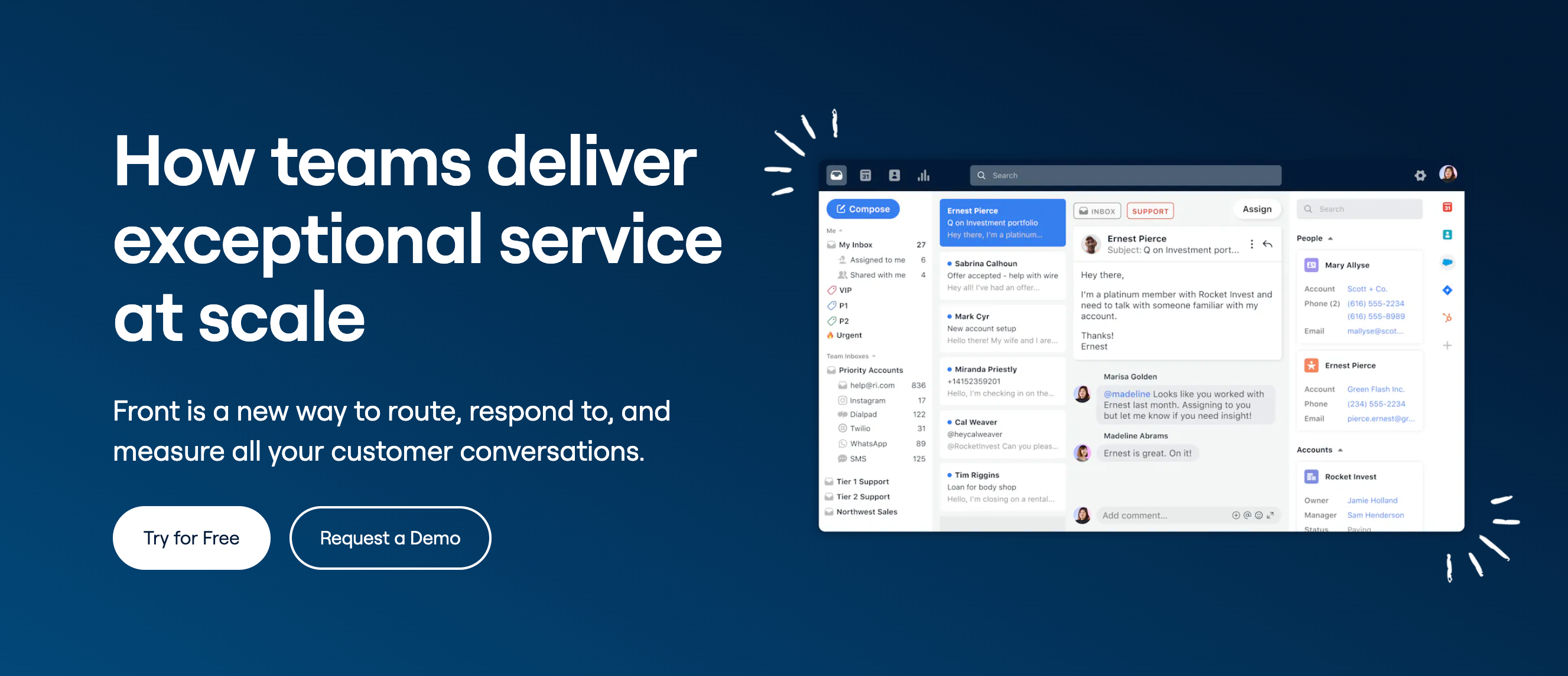 Front is a collaborative inbox tool that helps streamline communication with customers across multiple channels, including email, SMS, chat, and social media. It allows service reps to have access to the same information, ensuring a consistent and efficient customer experience.