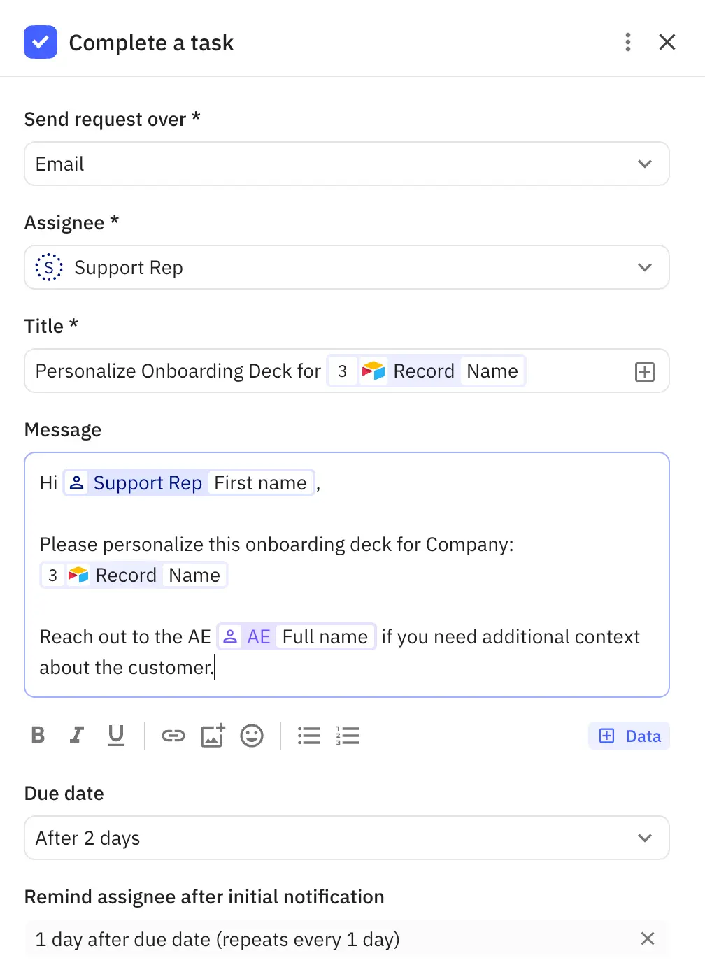 Sometimes automation just doesn't cut it—say, your boss needs to sign off on a document before you can ship it, or you want to check an email before it gets sent to a lead. Setting up human touchpoints in Zapier and Make is technically possible, but not built-in (or easy to set up). Relay.app uniquely integrates human judgment directly into workflows.