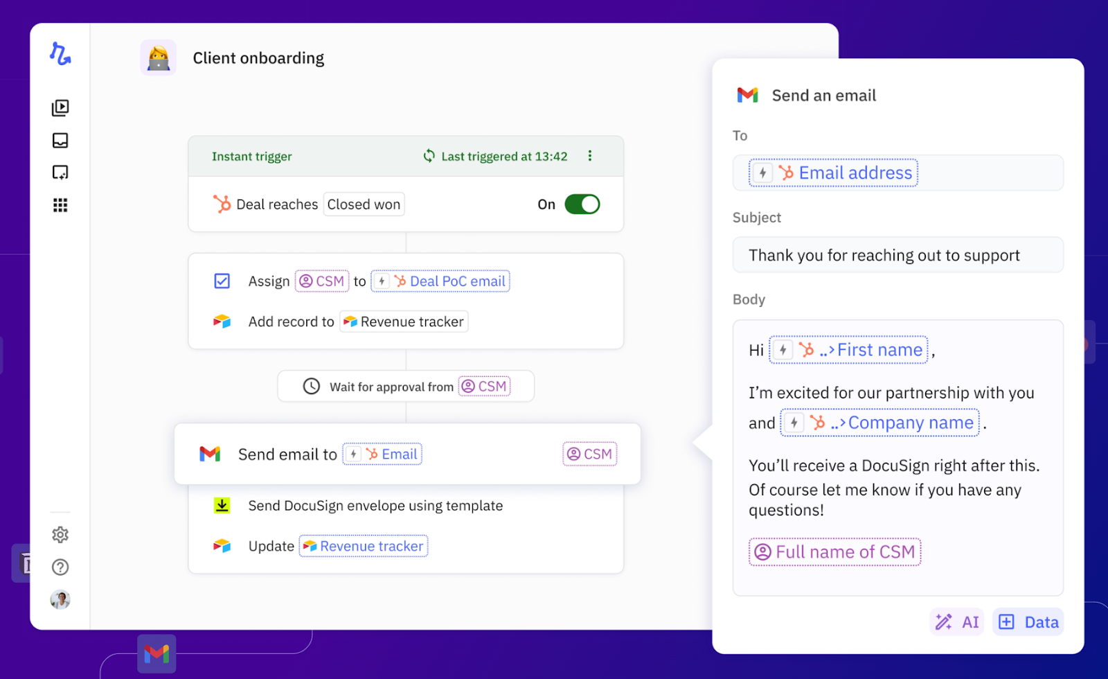 Take this example from Relay.app below, that personalizes emails based on HubSpot data.