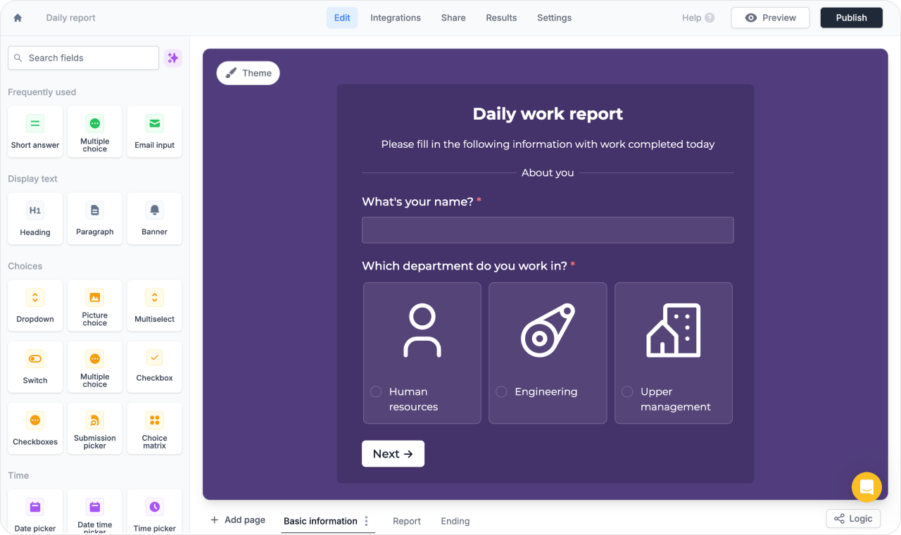 - Conditional logic. Advanced conditional logic features for creating dynamic forms that adapt based on user inputs.