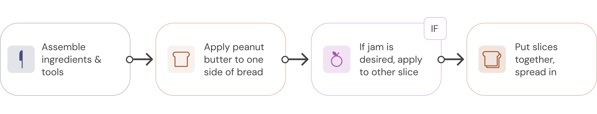 Think of a flowchart. Any task you accomplish in the real world, from making a sandwich to analyzing a thousand-row spreadsheet, can be represented as a flowchart: A first step, second step, maybe some logic or conditions, and so until the task is completed.