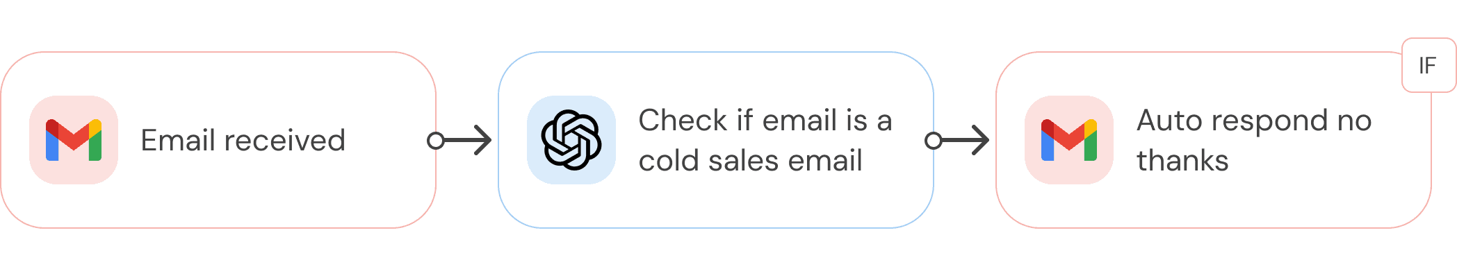 For example, the architect would predefine rules that every time an email is received, the AI should check if it’s a cold sales email, and if so, auto respond with a polite declining the offer.