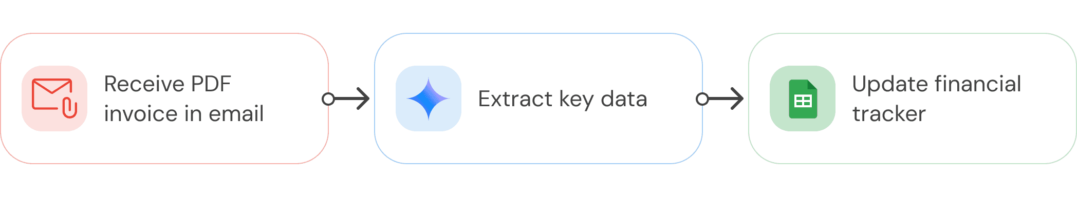 Example: When you get a PDF invoice in your email, use AI to extract key data, and update a spreadsheet.