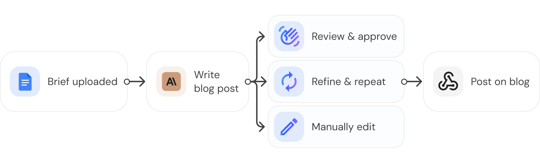Example: "Given this brief for a blog post, write the complete blog post."