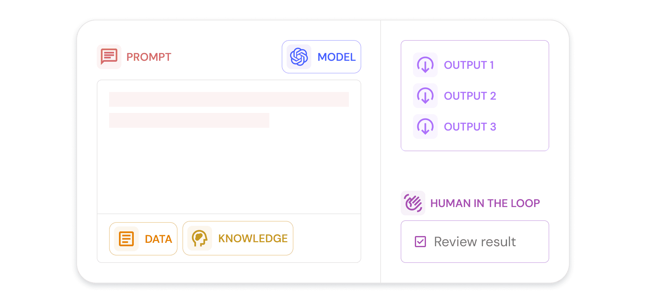 The output is the result of the AI's actions. This is important to think about when your AI is operating as part of a workflow or agent, as you'll need the right output to use in subsequent steps.