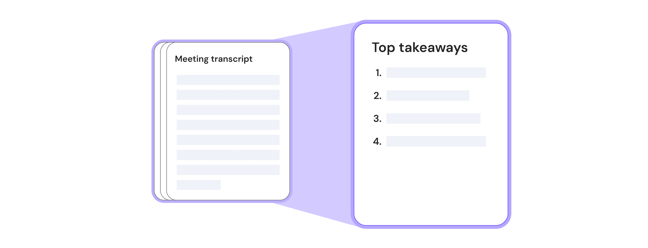 Take a transcript of a 60-minute meeting and summarize it into a 1-pager of notes and action items