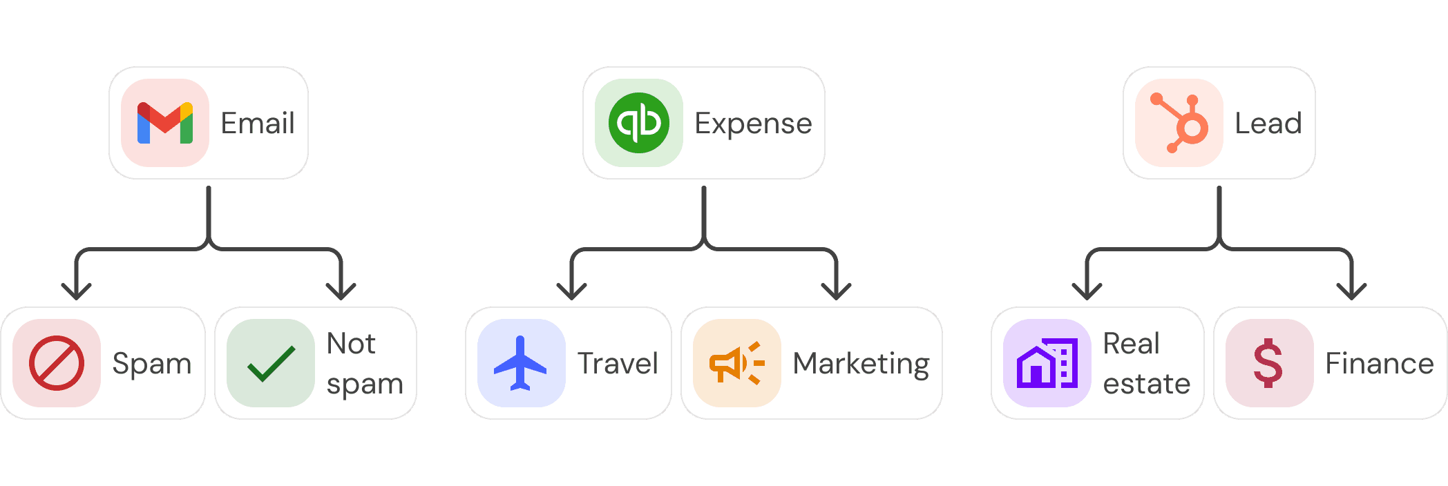Classification assigns data into one of multiple available categories. For example:
